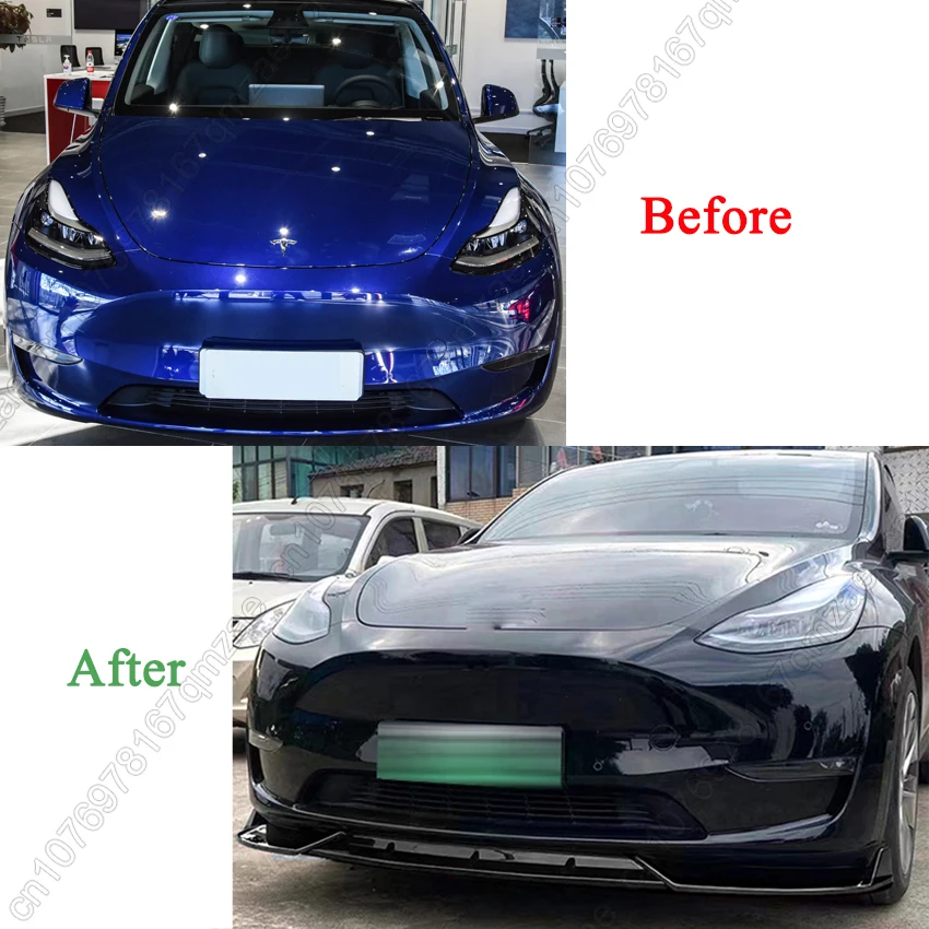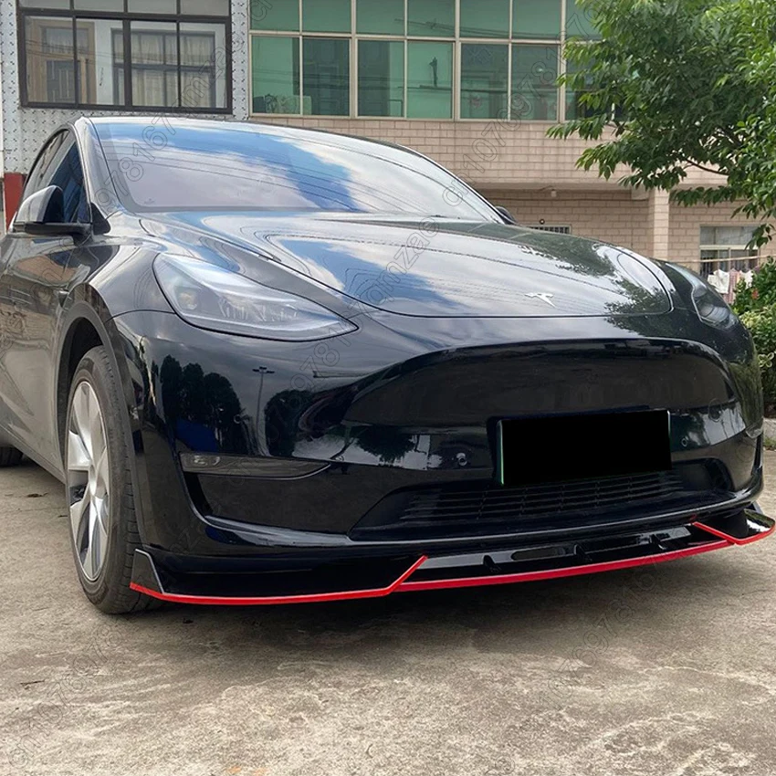 3Pcs Car Front Bumper Lip Spoiler Diffuser For Tesla Model Y 2020-2024 ABS Gloss Black Front Bumper Lip Protector Body Kits